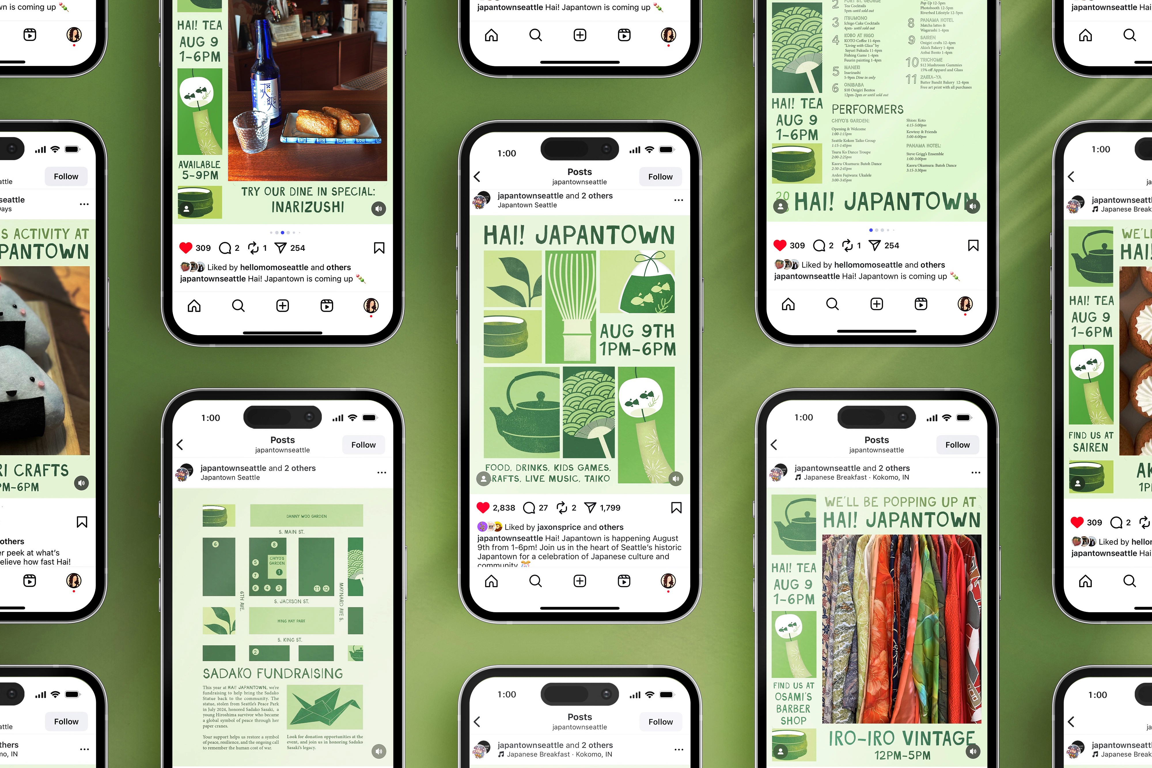 Hai! Japantown is an annual summer celebration highlighting the culture, businesses, and community of Seattle’s historic Nihonmachi. In collaboration with Shishido Creative, I co-created graphics and marketing materials for the event.